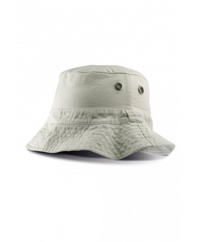 100% Baumwolle, vorgewaschen. Doppelt gesteppter Rand. Anti-Schweißband. Innen mit Kontrastfarbe Beige. 4 Metall-Luftösen.