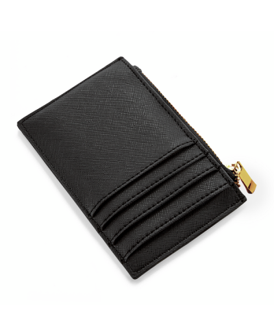 Material: 100 % PU in Lederoptik; Abmessungen: 12,5 x 7,5 cm; TearAway-Etikett für einfaches Rebranding, Saffiano-Feinkorn, modernes Slimline-Design, vorne und hinten dekorierbar, Platz für 4 Kreditkarten, Soft-Touch-Futter