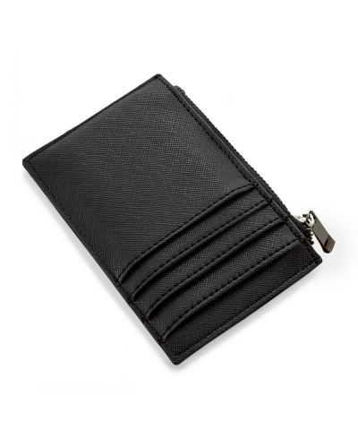 Material: 100 % PU in Lederoptik; Abmessungen: 12,5 x 7,5 cm; TearAway-Etikett für einfaches Rebranding, Saffiano-Feinkorn, modernes Slimline-Design, vorne und hinten dekorierbar, Platz für 4 Kreditkarten, Soft-Touch-Futter