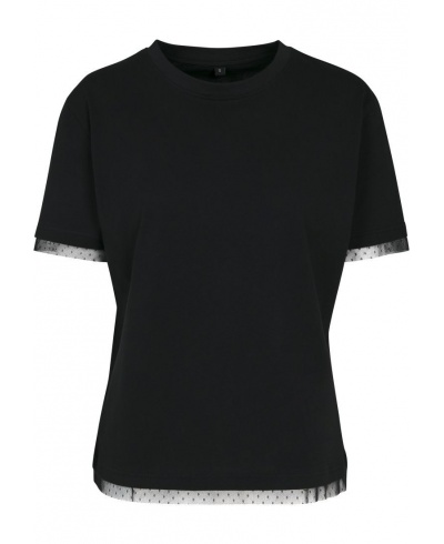 Robuste Spitzenapplikation an Ärmeln und Saum