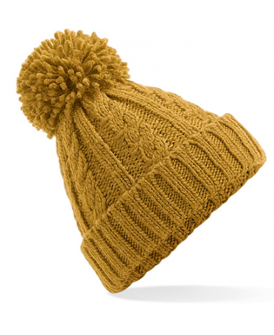 TearAway Label für einfaches Neulabeln, Schwerer Kabelstrick in Melange, Handgestricktes Griffgefühl, Einfarbige Bommel, Wärmendes Innenband aus Suprafleece®, Aufschlagdesign zur optimalen Verzierung