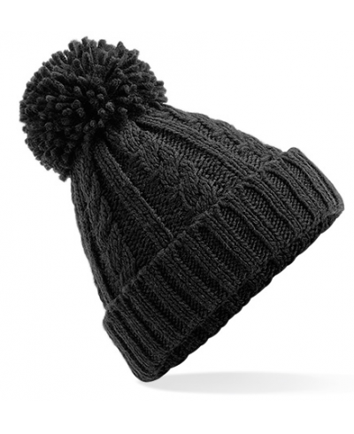 TearAway Label für einfaches Neulabeln, Schwerer Kabelstrick in Melange, Handgestricktes Griffgefühl, Einfarbige Bommel, Wärmendes Innenband aus Suprafleece®, Aufschlagdesign zur optimalen Verzierung