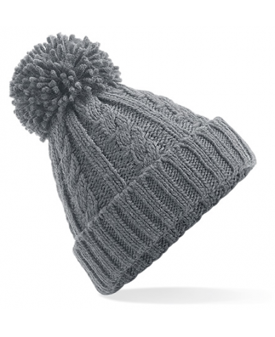 TearAway Label für einfaches Neulabeln, Schwerer Kabelstrick in Melange, Handgestricktes Griffgefühl, Einfarbige Bommel, Wärmendes Innenband aus Suprafleece®, Aufschlagdesign zur optimalen Verzierung