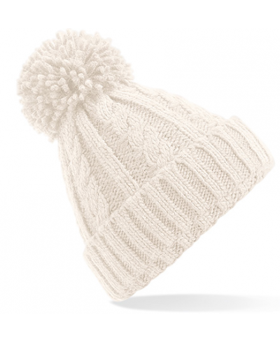 TearAway Label für einfaches Neulabeln, Schwerer Kabelstrick in Melange, Handgestricktes Griffgefühl, Einfarbige Bommel, Wärmendes Innenband aus Suprafleece®, Aufschlagdesign zur optimalen Verzierung