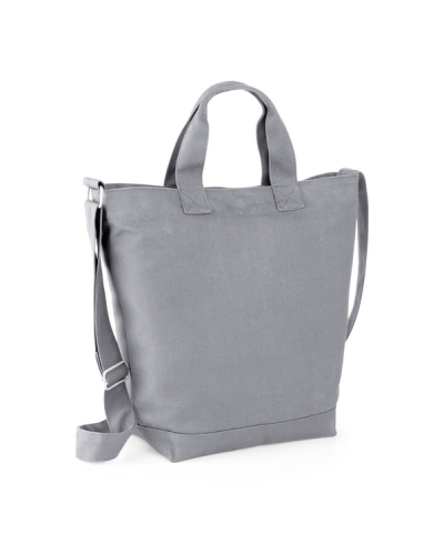 Material: 100 % Baumwoll-Canvas; Gewicht: 407 g/m²; Fassungsvermögen: 15 Liter; Grifflänge: 37 cm; Maße: 38 x 40 x 14 cm; Verstellbarer Schultergurt aus gleichem Stoff, Unisex-Styling, Innentasche für Wertsachen, Druckknopfverschluss