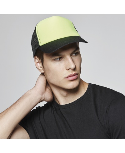 Cap in aktuellen und modernen Stil, oben in Netzstoff für Belüftung, einstellbare Plastikschnalle. Schweißband innen. Innen Nähte Ton-in-Ton. Zentrale Platte in Spezialgewebe für Sublimation, 4-fach gesteppter Schirm und rostfreie Schmuckknopf.