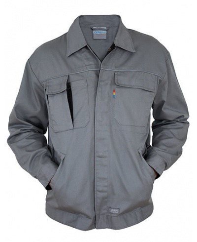 300 g/qm • 65% Baumwolle, gekämmt, 35% Polyester • Robuste verdeckte Druckknöpfe • Sicherheits-Reflexpaspel auf Brust und Rücken • Golffalte in Kontrastfarbe für mehr Bewegungsfreiheit (gute Veredelungsfläche) • Diverse verdeckte Taschen, Innentasche mit Klettverschluss • Ärmelabschluss mit Klettverschluss • Waschbar bis 60°C.