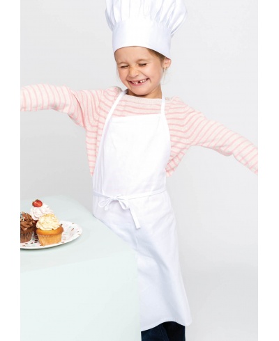 100 % Baumwolle. Set bestehend aus Kochmütze und Schürze. Durch Klettverschluss größenverstellbare Kochmütze.