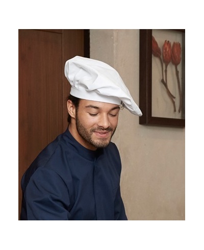 Formschöne Kochmütze mit breitem Bund. Durch den praktischen Klettverschluss lässt sie sich stufenlos verstellen und individuell anpassen. Für optimale Hygiene bei 95° C waschbar.