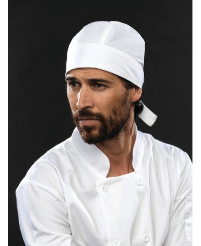 Bequeme Zandana mit zwei Bindebändern hinten – eine beliebte Kopfbedeckung in vielen Küchen und Gastronomieumgebungen, für angemessenen Schutz bei strengen Hygieneanforderungen.