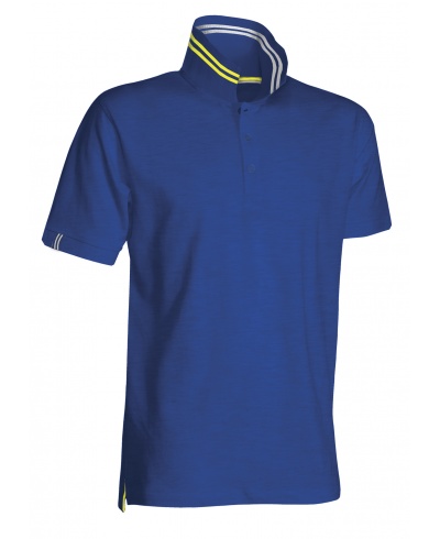 Kinder-Polo-Shirt, kurzärmelig, mit 3 Knöpfen Ton-in-Ton mit Perlmutteffekt, Kragen und Ärmelrand aus Feinripp, Seitenschlitzen, Nackenband in Kontrastfarbe, Stretchnähten,