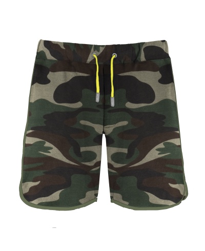 Kinder-Sweatshorts mit Gummibund und Kordelzug in der Taille, verdecktem Reißverschluss, zwei Vordertaschen und Säumen in Kontrastfarbe