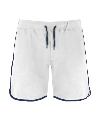 Kinder-Sweatshorts mit Gummibund und Kordelzug in der Taille, verdecktem Reißverschluss, zwei Vordertaschen und Säumen in Kontrastfarbe