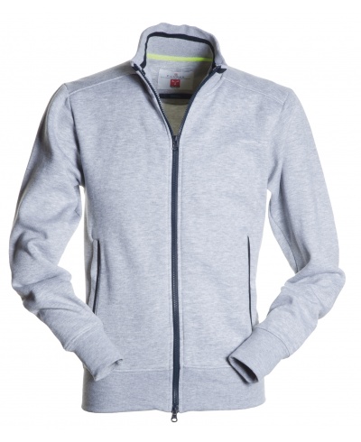 Kinder-Sweatjacke mit durchgehendem 2-Wege-SBS-Reißverschluss aus Kunststoff in Kontrastfarbe mit Metallschieber, kontrastfarbiger Einfassung auf dem Rippstrickkragen und auf den Seitentaschen, Kugelärmeln, zwei Außentaschen mit Reißverschlüssen in Kontrastfarbe, elastischem Feinripp an Ärmeln und Taille, verstärkten Nähten