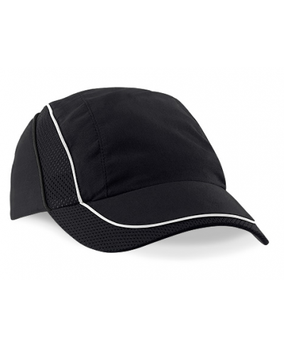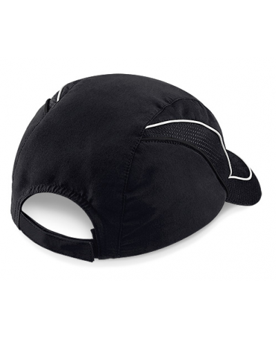 Vorgeformter Schirm, nahtlose, zentrale Frontplatte central, Schweißband aus 100 % Polyester Coolmax®-Gewebe, Mesh-Belüftungseinsätze, reflektierende Akzente für verbesserte Sichtbarkeit, Rip-Strip™-Größenverstellung