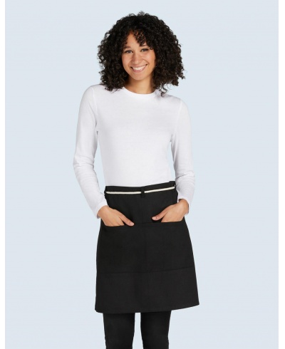 Dies ist eine Bistroschürze der besonderen Art, trendig und praktisch zugleich. Es besteht aus Canvas und verfügt über eine natürliche Kordelbindung durch Stoffschlaufen an der Taille sowie eine große Tasche mit zwei Fächern. Es ist so konzipiert, dass Teams modisch und professionell aussehen. Auch die Farben liegen im Trend: Wählen Sie aus unseren auffälligen Farbtönen, die auf Einzigartigkeit ausgelegt sind. Bei 60° waschbar, außerdem farbecht und pflegeleicht, für ein langanhaltendes frisches Aussehen.