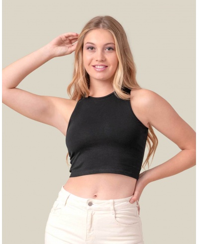 Crop-Top. Kragen und Armausschnitte aus demselben Stoff.