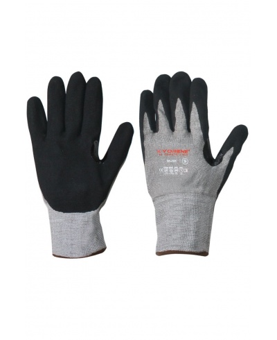 Material: 50% KYORENE, 21% HPPE, 12% GLASFASER, 7% ELASTAN, 7% STAHLFASER, 3% POLYESTER; Schnittschutzhandschuhe KYORENE liner 13G, belüfteter Handrücken, Strickbündchen, Nitrilbeschichtung; Eigenschaften: unempfindlich;; Stärken: Komfort, Griff, Tastgefühl, Präzision,; schnittfest; Einsatzbereiche: Handhabung und Montage von scharfkantigen, trockenen oder leicht öligen Werkstücken