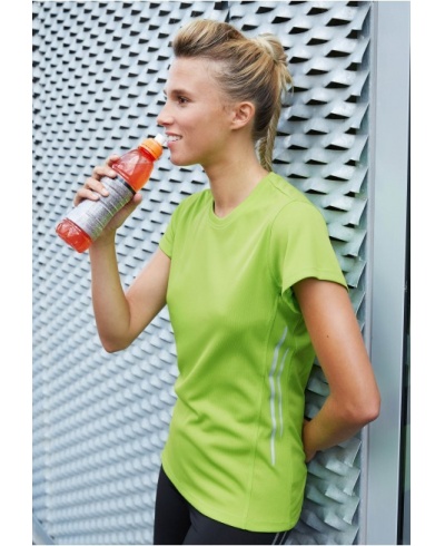 50% Polyester Top Cool ® / 50% Polyester. Körpernaher Schnitt. Ultraleicht und schnelltrocknend. Schweißabführend durch Wabenstruktur. Reflektierende Designelemente hinten und vorne. Schweißband in Kontrastfarbe im Kragen.