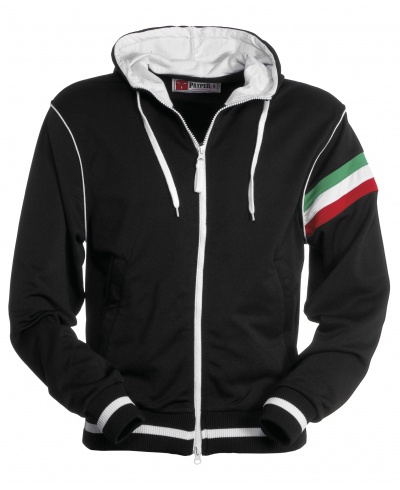 Damen-Kapuzenpullover mit durchgehendem, kontrastierendem Kunststoffreißverschluss mit doppeltem Metallzug. Kontrastierende Kapuze und Tunnelzug, kontrastierende Stretch-Rippbündchen und -saum, kontrastierende Bündchen, Ziernähte (Farben der Flagge) auf dem linken Ärmel, 2 Taschen mit Reißverschluss, verstärkte Nähte und Pique-Gewebe für mehr Atmungsaktivität