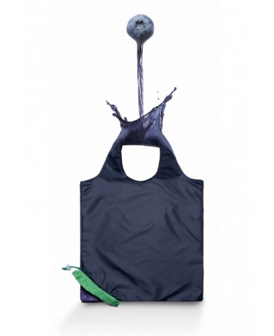 Einkaufsbeutel aus 190T Polyester, PU-beschichtet. Lässt sich in Beerenform zusammenfalten.
