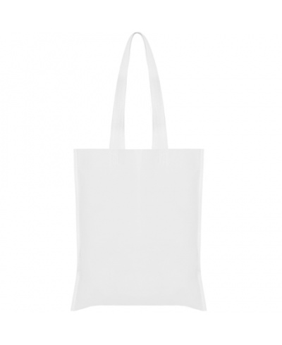 Einschweißende Tasche aus Polypropylen, (sog. Nonwoven-Material), mit speziall Henkellänge in der gleichen Farbe.