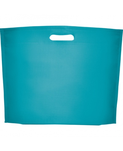 Einschweißende Tasche aus Polypropylen, (sog. Nonwoden-Material), mit gebohrte Griffe und Bodenfalte.