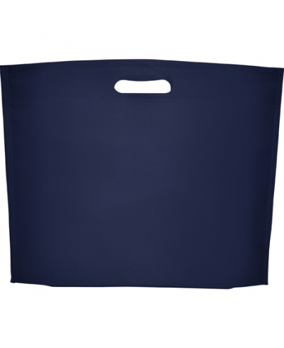Einschweißende Tasche aus Polypropylen, (sog. Nonwoden-Material), mit gebohrte Griffe und Bodenfalte.