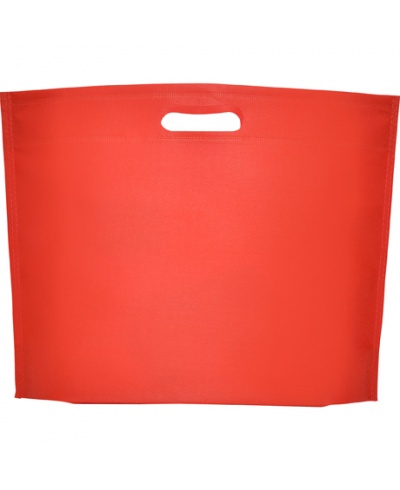 Einschweißende Tasche aus Polypropylen, (sog. Nonwoden-Material), mit gebohrte Griffe und Bodenfalte.