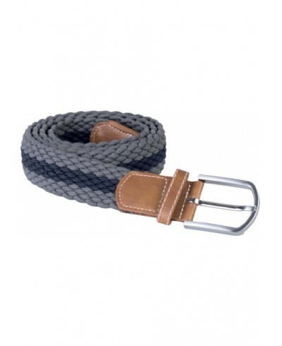 Geflochtener Gürtel mit Metallschnalle. Elastisches Material 52 % Kautschuk / 48 % Polypropylen, locker gewebt und geflochten. Gürtelschlaufen aus Polyurethan-Kunstleder mit kontrastfarbenen Ziernähten. Im Baumwollbeutel geliefert.