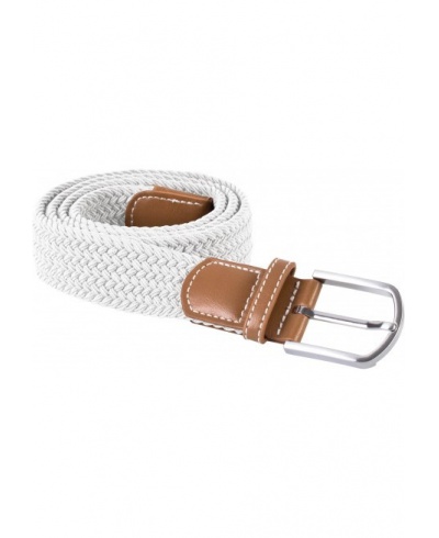 Geflochtener Gürtel mit Metallschnalle. Elastisches Material 52 % Kautschuk / 48 % Polypropylen, locker gewebt und geflochten. Gürtelschlaufen aus Polyurethan-Kunstleder mit kontrastfarbenen Ziernähten. Im Baumwollbeutel geliefert.