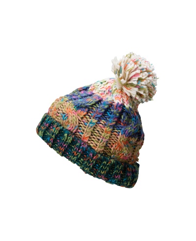 Mehrfarbige Mütze mit Umschlag und Pompon