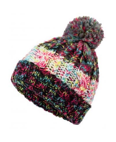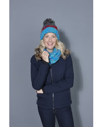 Mehrfarbige Mütze mit Umschlag und Pompon