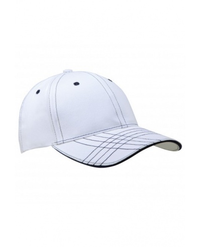 100% gebürsteter Baumwoll-Twill. 6-Panel, laminiert. Ösen und Nähte in Kontrastfarbe. Baumwoll-Schweißband.