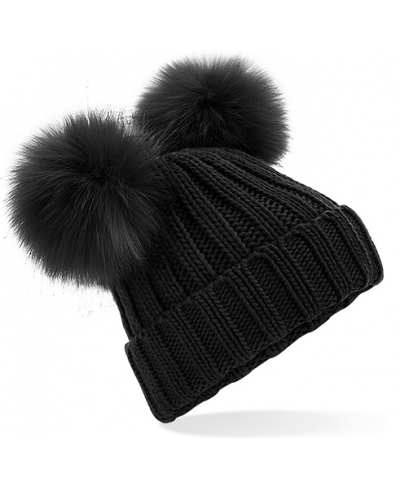 Beanie aus Kunstpelz mit doppeltem Pop-Pom