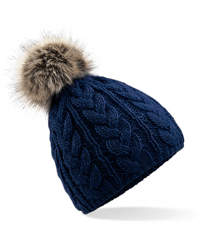 Beanie mit Kunstpelz-Pop-Pom-Kabel