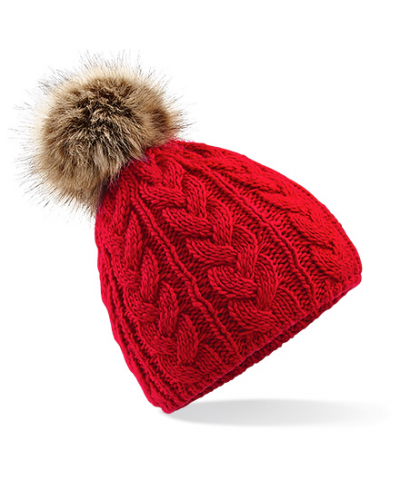 Beanie mit Kunstpelz-Pop-Pom-Kabel