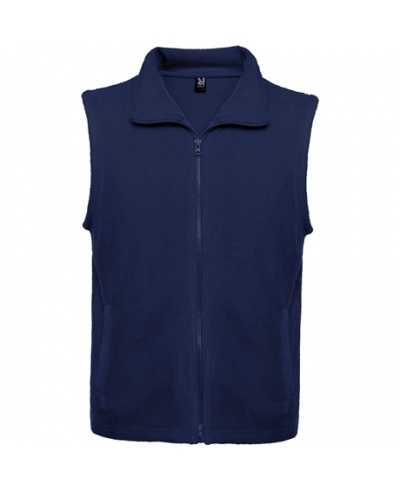 Fleece Weste mit hohem Kragen. Durchgehender Reißverschluss und Reißverschlüsse der Seitentaschen gleichfarbig.