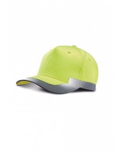 100% Polyester. 5-Bahnen-Kappe mit reflektierenden Elementen seitlich und am Schirm. Größeneinstellung mit Klettverschluß.