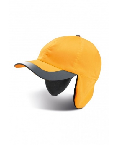 100% Polyester. 6 Felder-Kappe, nicht-laminiert. Mit Ohrenklappen. Fluoreszenzierende Kappe mit Fleece-Futter und reflektierenden Bändchen am hinteren Panel sowie am Schirm. Einstellbarer Kordelzug mit Stoppern.