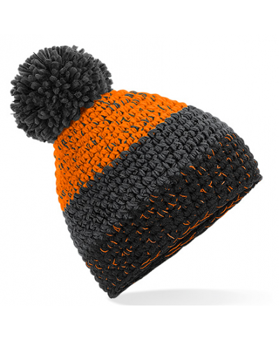TearAway-Label für einfaches Rebranding, Handgestrickt, auffälliges dreifarbiges Streifendesign, zum Überziehen, luxuriöser Bommel, Suprafleece®-Thermoband