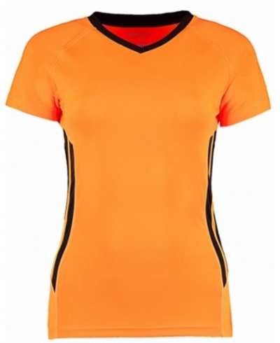 140 g/qm • 100% Polyester • Atmungsaktiv • Kontrastfarbener V-Ausschnitt • Im Nacken eingedruckte Produktinfos • Seiteneinsätze in Kontrastfarbe • Ziernaht an Kontrasteinsatz • Abgerundeter Rücken • Gerader Saum vorne.