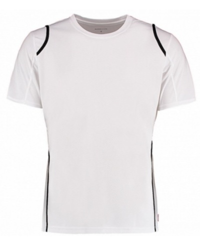 140 g/qm • 100% Polyester • atmungsaktives Strukturfunktionsshirt • Nackenband • Aufgesetzte schmale Kontraststreifen über Schulter, Rücken und Seiten verlaufend • Seitennähte • Doppelnähte an den Abschlüssen.