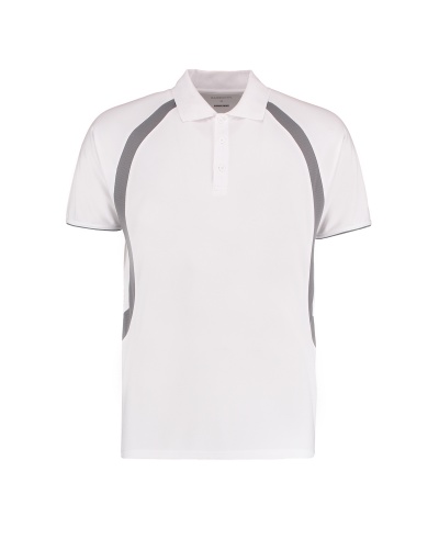140 g/qm • 100% Polyester • Atmungsaktives Funktionspolo • 3er-Knopfleiste mit Ton-in-Ton Knöpfen • Kontrasteinsätze über Raglanausschnitt und Seiten verlaufend.