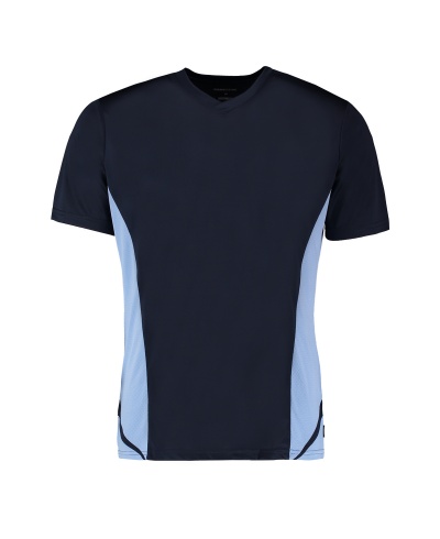 140 g/qm • 100% Polyester • Atmungsaktives Funktionsshirt • V-Ausschnitt • Seiteneinsatz in Kontrastfarbe • Seitennähte.