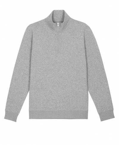 Gewicht: 300 g/m²; Material: 85% ringgesponnene gekämmte Bio-Baumwolle, 15% recyceltes Polyester; Eingesetzter Ärmel, Halskragen aus Eigenmaterial, Inneres Fischgräten-Nackenband, Eigenes Halbmondgewebe am Nacken, Halber Reißverschluss vorne in der Mitte mit Innenverkleidung, 1x1 Rippe am Ärmelsaum und unteren Saum, Armloch, Ärmelsaum und unteren Saum mit Doppelnadelstich