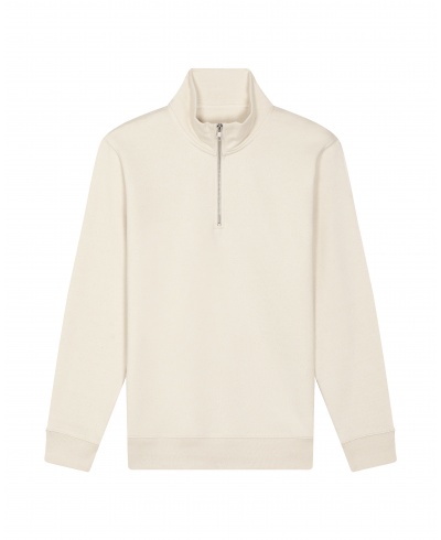 Gewicht: 300 g/m²; Material: 85% ringgesponnene gekämmte Bio-Baumwolle, 15% recyceltes Polyester; Eingesetzter Ärmel, Halskragen aus Eigenmaterial, Inneres Fischgräten-Nackenband, Eigenes Halbmondgewebe am Nacken, Halber Reißverschluss vorne in der Mitte mit Innenverkleidung, 1x1 Rippe am Ärmelsaum und unteren Saum, Armloch, Ärmelsaum und unteren Saum mit Doppelnadelstich
