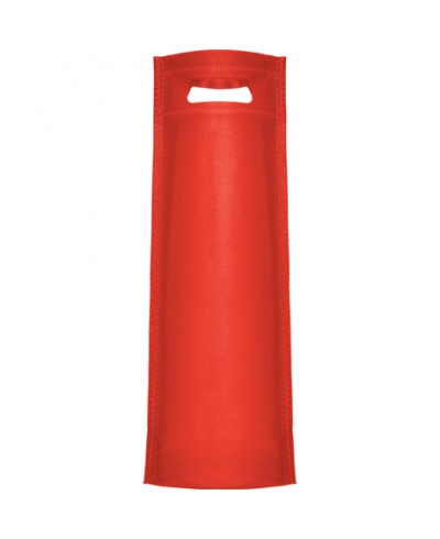 Einschweißende Tasche, speziell für Flaschen, aus Polypropylen, (sog. Nonwoden-Material), mit gebohrte Griffe und Bodenfalte.