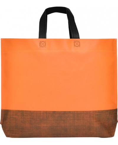 Einschweißende Tasche aus Polypropylen (sog. Nonwoden-Material), farbkombiniertes Design, mit schwarze, kurze Henkel. Bodenfalte und Seitenfalte für praktischen Nutzwert.