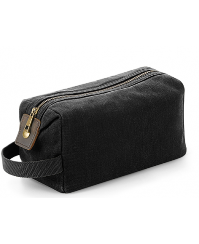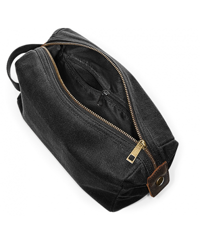 TearAway-Label für einfaches Rebranding, Echtleder-Akzente, extra langer Hauptfach-Reißverschluss für einfachen Zugriff, komplett gefüttert, Innentasche mit Reißverschluss, interne Organisationstaschen, Tragegriff aus Baumwollgewebe, Beschläge in Antikmessingoptik; Maße: 25 x 13 x 11 cm; Fassungsvermögen: 4 Liter